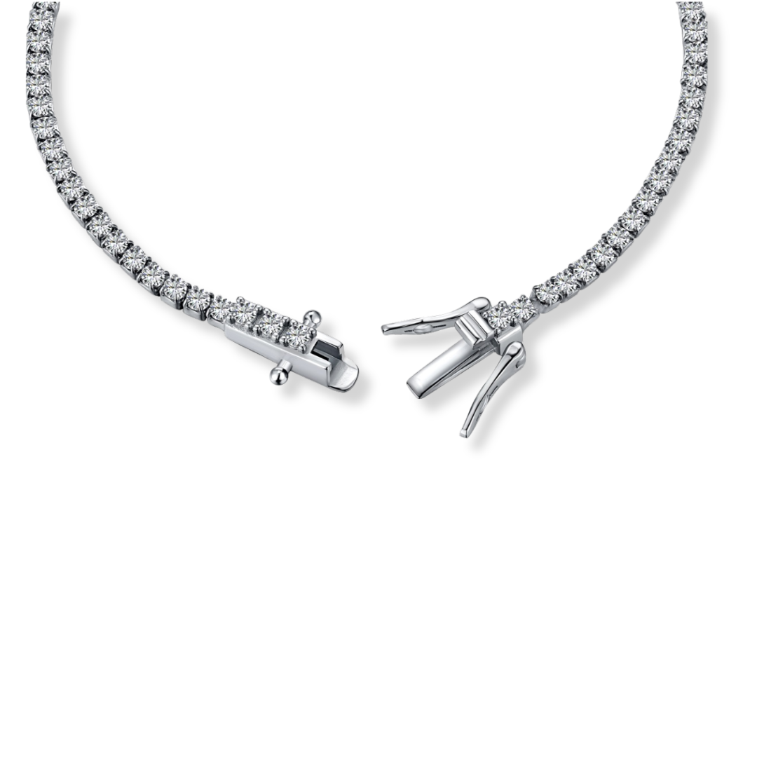 Why We Love It: Our classical Boscova Tennis Bracelet is a status symbol and must have in every jewellery box. The smallest in our collection, it’s an entry piece that show the state of the heart of high jewellery Italian craftsmanship and innovation of Lab-Grown Diamonds. It features an approximal total carat weight of 3ct, each diamond weights 0.04ct with 2.3mm size and a safety box clasp. The best ethical choice, without compromising quality.
